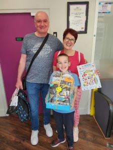 Our talented 1st prize winner collecting their hamper of art goodies from Art n Hobby