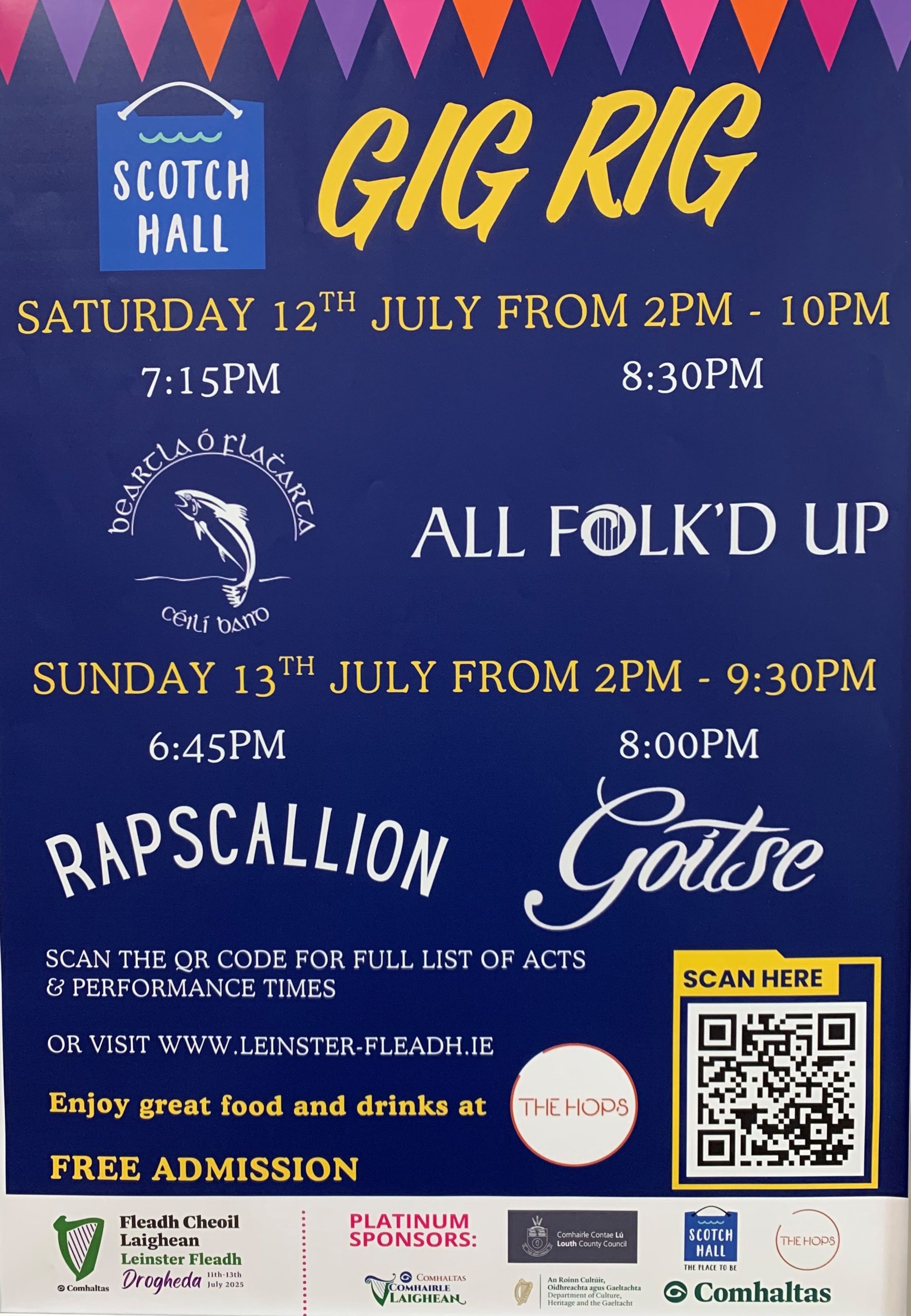 Whether you’re a proud local, a newcomer to the Fleadh, or simply here to enjoy the lively atmosphere, there’s something for everyone. Enjoy performances on the Gig Rig at Scotch Hall from 2pm.