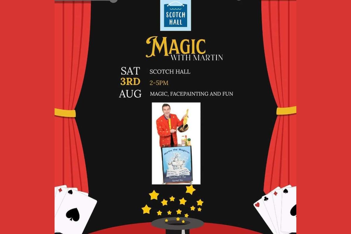 Join us for an enchanting afternoon of fun and wonder at Scotch Hall with “Magic with Martin” on Saturday, August 3rd, from 2 PM to 5 PM. This magical event promises a delightful experience for the whole family, featuring captivating magic tricks, face painting, and plenty of fun activities.